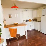 This apartment has a fully equipped kitchen, and comforts such as climate control.